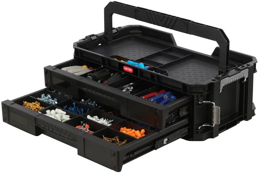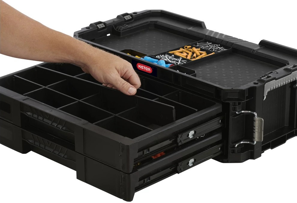 A Connect 2 fiókos rendszerező ideális megoldást kínál kisebb szerszámok, alkatrészek és barkácskiegészítők tárolására és rendszerezésére.