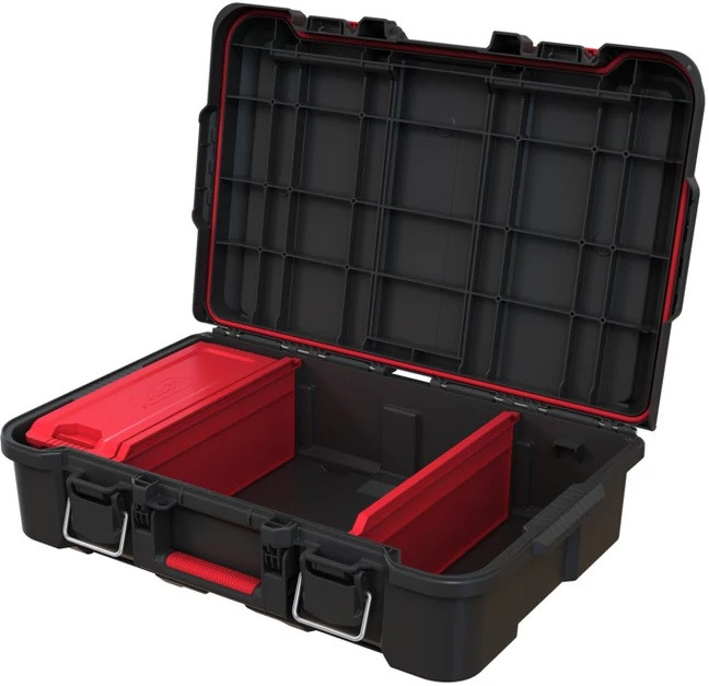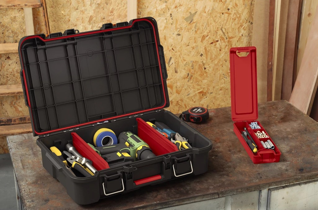 Ha használtál már szerszámosládát, akkor bizonyára ismerős lehet az érzés, amikor hosszasan keresel egy apró alkatrészt. Erre kínál megoldást a Stack'N'Roll komplex rendszerező, amely külön rekesszel rendelkezik az apró alkatrészek, kellékek tárolására. Ez a kisméretű, kivehető rekesz a szerszámosláda belsejében, de akár a tetején is helyet kaphat, hogy mindig kéznél legyenek a csavarok, vagy akár a fúrófejek. A munka sokkal élvezetesebb és hatékonyabb lesz a segítségével, ugyanis rengeteg időt képes megtakarítani.