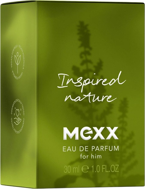 A MEXX új illatélményt kínál elméje, teste és otthona számára. Az érzékek felébresztésére tervezett Inspired Nature kollekció megnyugtató harmóniát sugároz. Vegyen egy pillanatra levegőt, kapcsolódjon a jelenhez, és élvezze a férfiaknak szánt Inspired Nature illatot , ahogy a nyugalom és a derű érzése átjárja Önt. A természetben tett frissítő kirándulást idéző, hangulatjavító, hosszan tartó eau de parfum a zsálya, a citrom és a friss tengeri jegyek aromás keveréke, amely a cédrusfa földes hátterével áll szemben. A természet tökéletlensége által ihletett, fás férfi parfümöt egy organikus formájú üvegben kínálják, amely szemet gyönyörködtető és megnyugtatóan kézbe vehető. A vegán formula bőrgyógyászatilag tesztelt, és a férfiaknak szóló fás illatú parfüm palackját 25%-ban újrahasznosított üvegből készítették.