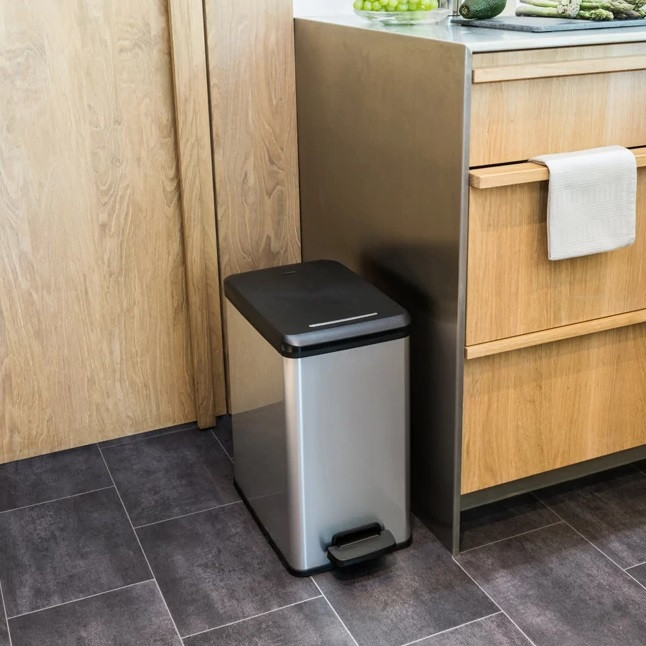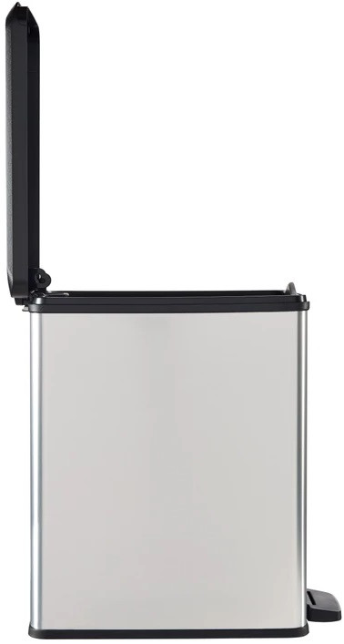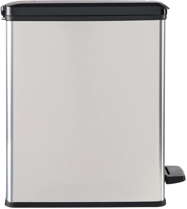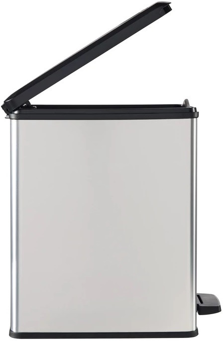 Functional bin to keep the bathroom or the kitchen clean more easily. It fits perfectly into modern designed bathrooms and kitchens. It is made of premium quality plastic; the metal effect finish provides the metal look, but it remains light. A special pedal can be used to open the bin, so hands remain clean. The content of the bin can be stored continuously closed and invisible due to the structure of the lid. The slim shape makes it easier to place the bin aesthetically in interior places. Size (width x depth x height) 250x393x607 mm
