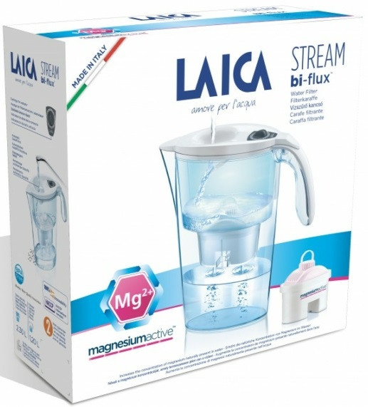 LAICA Stream Line fehér vízszűrő kancsó 1 db Magnéziumos bi-flux szűrőbetéttel (6/karton)