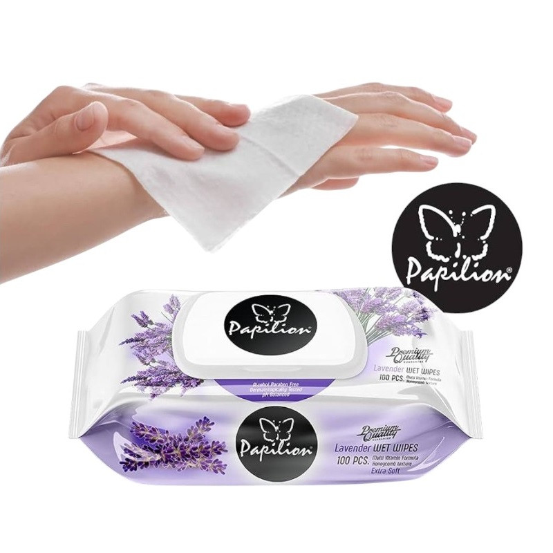 Alkohol és parabén mentes, PH semleges termék. Nedves törlőkendő méhsejtes mintával, levendula illattal, amely tisztítja, ápolja és hidratálja még az érzékeny bőrt is. PAPILION Levendula, puha tapintású nedves törlőkendő.