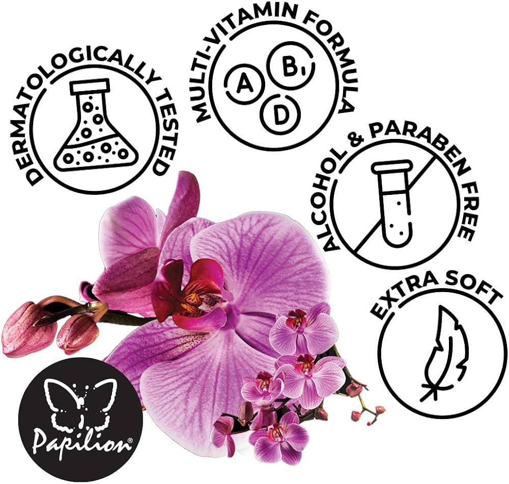 Alkohol és parabén mentes, PH semleges termék. Nedves törlőkendő, orchidea és liliom illattal, amely tisztítja, ápolja és hidratálja még az érzékeny bőrt is. PAPILION Aromatherapy, puha tapintású nedves törlőkendő.